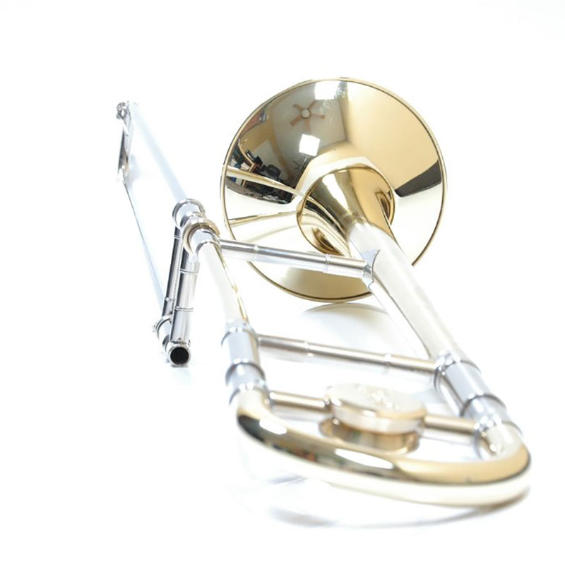 The Bach model 12 features a 7-1/2" one-piece hand-hammered bell designed for excellent resonance and projection. The .500'" bore handslide design provides balanced and light response. The clear lacquer finish provides a subtle warmth to the overall sound. The Bach Stradivarius model 16 tenor trombone is designed for the player looking for a high performance straight trombone with a classic small bore feel.