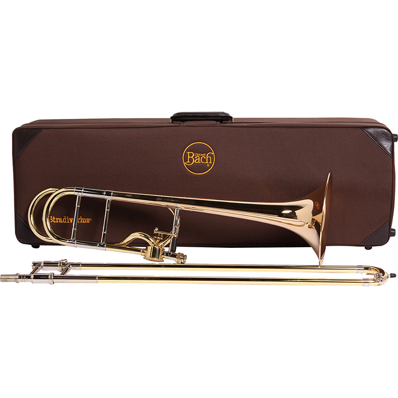 The Bach 42AG trombone features an 8-1/2" one-piece hand-hammered gold brass bell that has defined the symphonic sound for generations. The .547" large bore combined with the patented "Hagmann" valve and open wrap F attachment offers a warm sound, great projection, and an open feel. The chrome plated nickel silver inner handslide tubes provide the ideal surface for smooth and quick handslide action. The clear lacquer finish adds a subtle warmth to the sound overall. The Bach Stradivarius 42AG professional trombone is ideal for both symphonic and solo performance.