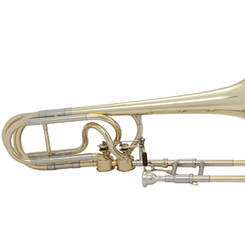 The Bach 50A3LG inline independent double rotor bass trombone in the key of Bb/F/Gb features an 10-1/2" one-piece hand-hammered gold brass bell that has defined the symphonic sound for generations. The .562" large bore combined with "Hagmann" valves and open wrap F/Gb attachments offers outstanding clarity and projection with just less resistance. The chrome plated nickel silver inner handslide tubes provide the ideal surface for smooth and quick handslide action. The clear lacquer finish adds a subtle warmth to the sound overall. The Bach 50A3LG professional bass trombone is ideal for both symphonic and solo performance.