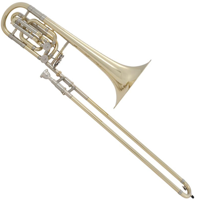 The Bach 50B2L stacked dependent double rotor bass trombone in the key of Bb/F/Eb features an 10-1/2" one-piece hand-hammered yellow brass bell that has defined the symphonic sound for generations. The .562" large bore combined with the traditional wrap F/Eb attachments offers outstanding clarity and projection with just the right amount of resistance. The chrome plated nickel silver inner handslide tubes provide the ideal surface for smooth and quick handslide action. The clear lacquer finish adds a subtle warmth to the sound overall. The Bach 50B2L professional bass trombone is ideal for both symphonic and solo performance.