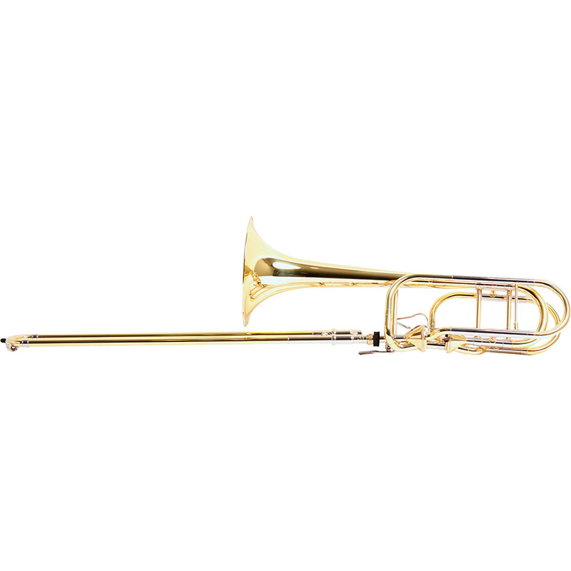 The Bach 50T3L inline independent double rotor bass trombone in the key of Bb/F/Gb features an 10-1/2" one-piece hand-hammered yellow brass bell that has defined the symphonic sound for generations. The .562" large bore combined with "Thayer" valves and open wrap F/Gb attachments offers outstanding clarity and projection with just less resistance. The chrome plated nickel silver inner handslide tubes provide the ideal surface for smooth and quick handslide action. The clear lacquer finish adds a subtle warmth to the sound overall. The Bach 50T3L professional bass trombone is ideal for both symphonic and solo performance.