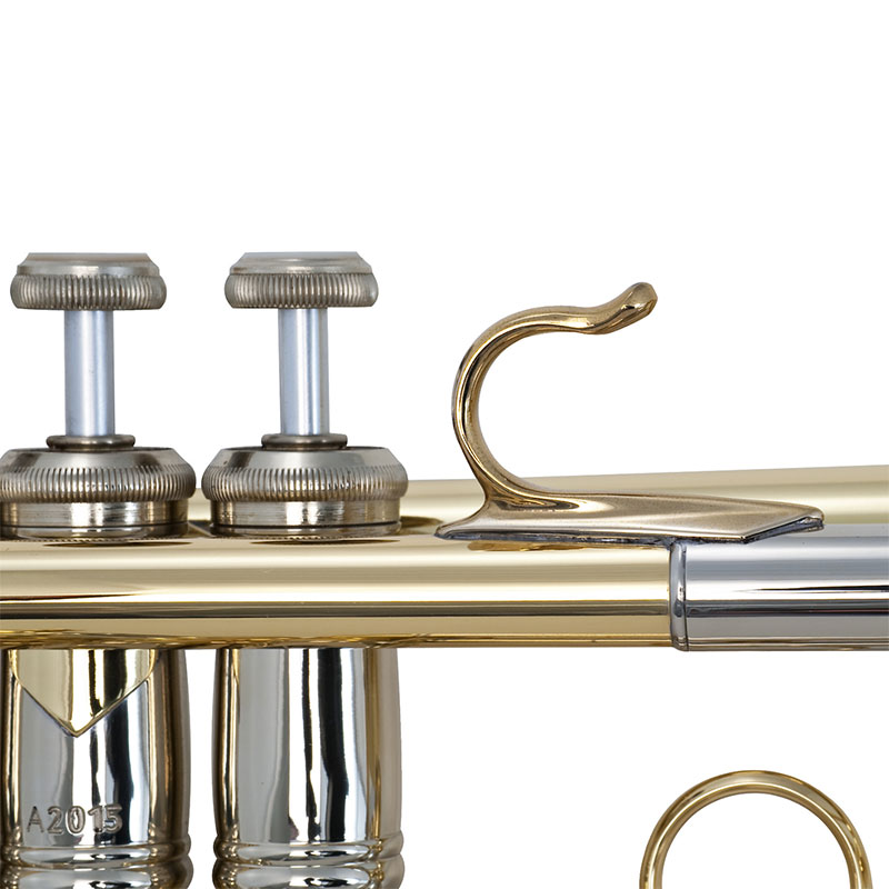 Each Artisan Bb trumpet is made with a one-piece hand-hammered yellow brass bell with a flat rim and special acoustic treatment in both material and manufacturing process resulting in a beautiful Bach Stradivarius sound with a larger core and a broader range of color. The two-piece valve construction with nickel balusters and brass casings harkens back to the construction techniques used by Vincent Bach when making classic Bach trumpets in New York City and Mount Vernon, New York. Monel pistons along with two sets of brass and plastic valve guides offer the player a choice in response and feel. The 3rd valve tone enhancing ring offers yet another choice in response. The extended 3rd slide rod stop allows the player to extend the range to low F. The 1st slide split ring, enhanced radius ferrules, sculpted bracing, and artistic engraving are all key contributors to the unique response while providing an unparalleled elegance in appearance. The clear lacquer finish of the AB190 provides a subtle warmth to the overall sound. These features combined with a .459" medium-large bore allow the player to produce a spectacular sound well suited for all types of music.No other brand evokes more passion, loyalty, and respect than Bach Stradivarius. Exceptional tonal color, balanced response, and superb projection are the hallmarks of designs by Vincent Bach. Carrying on the legacy and true to the vision of the master craftsman, the makers of today's Bach Stradivarius proudly introduce the Artisan Collection. Skillfully handcrafted, Artisan culminates in a unique blend of classic design, elegant styling, and the signature Bach sound. Whether a passionate enthusiast or performing artist, experience The Artisan Collection and discover the Artisan within.