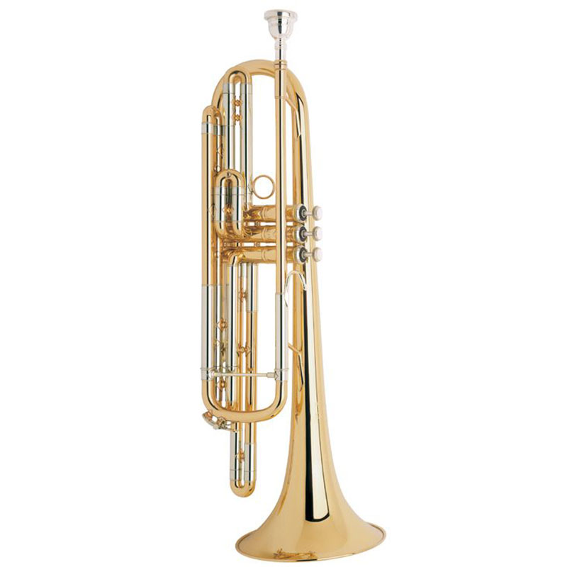 Initially designed as a alternative to the valve trombone, the B188 bass trumpet is well suited for everything from Wagner operas and solo work, to jazz ensembles, brass quartets, and marching bands. The 7 diameter one-piece hand-hammered professional yellow brass bell provides tremendous volume and projection. It requires the use of a small shank trombone mouthpiece. The 1st valve thumb ring allows for quick intonation adjustments while the Monel pistons provide smooth and quick action. The clear lacquer finish provides a subtle warmth to the overall sound. These features combined with a .485" bore allow the player to produce a well-rounded sound well suited for all types music.