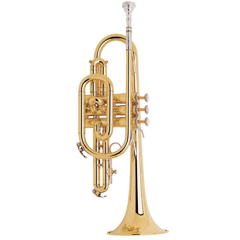 The Bach model CR301H is made in the USA and features a standard long bell design. The design provides ease of play, responsiveness and projection as well as accurate intonation. Professional Monel pistons provide light, quick action while the rose brass leadpipe warms the sound and resists corrosion. The 1st valve thumb saddle makes for easy intonation adjustments. The clear lacquer finish provides a subtle warmth to the overall sound. The CR301H is a well designed durable instrument perfect for the beginning student and is well suited for all types of music.