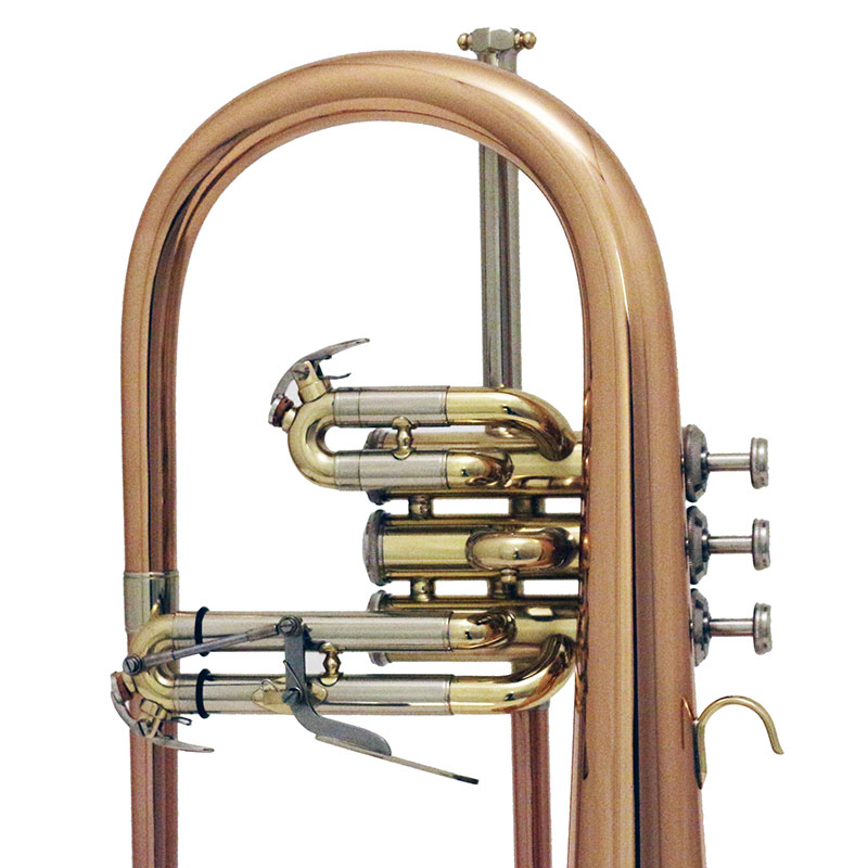 Vincent Bach has for many years been known for producing some of the best professional trumpets and flugelhorn in the world. With FH-501 Bach has developed a really good flugelhorn for beginners who do not want to spend a fortune. The instrument's specifications match the more professional instruments: eg. is flugelhorn built with a sound piece of gold-brass giving the warm sound like flugelhorn is known for. The trigger on the 3rd bracket ensures that the instrument can intone as well as the expensive Bach flugelhorn.