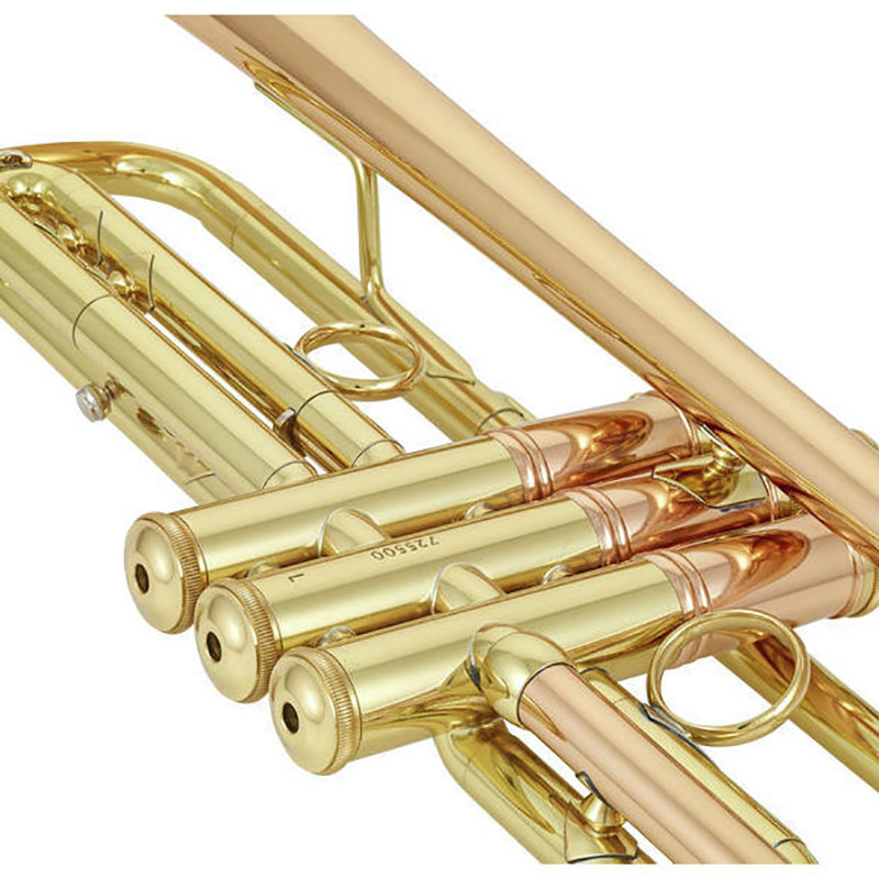 This trumpet features a .462" large bore with a lightweight commercial bronze bell with a French-style bell rim in Vincent Bach's first bell design-the #1,or "T" bell, plus a two-piece brass valve casing with bronze balusters. This commercial design is continued in the lightweight brass outer and lightweight nickel-silver inner slide tubing plus minimal bracing to allow maximum vibration.