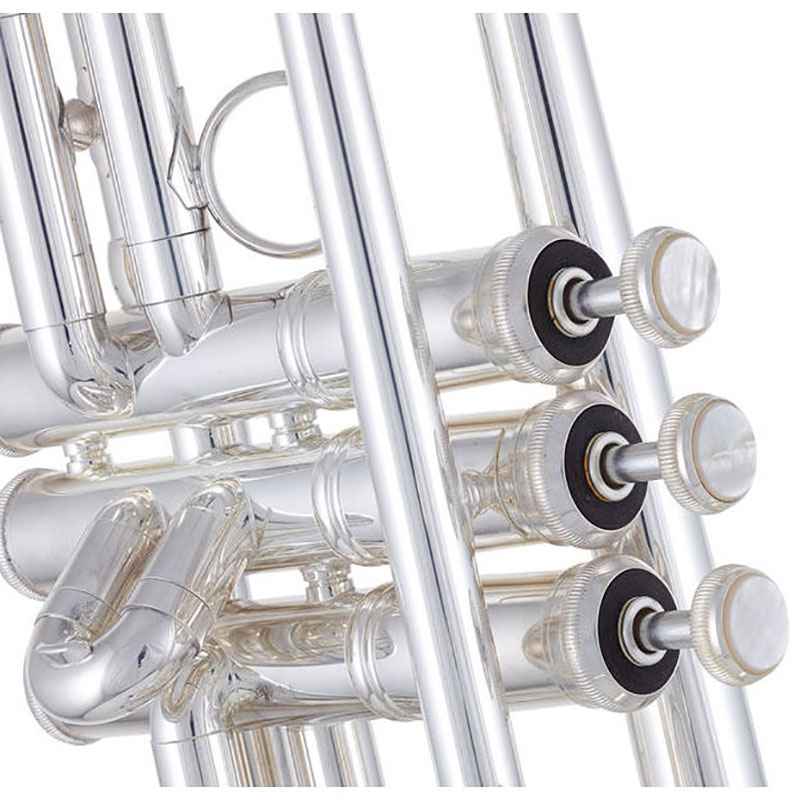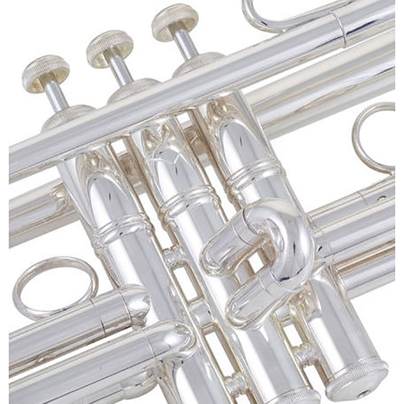This trumpet features a .459-inch medium-large bore with a lightweight commercial bronze bell with a French-style bell rim in Vincent Bach's first bell design-the #1,or "T" bell, plus a two-piece brass valve casing with bronze balusters. This commercial design is continued in the lightweight brass outer and lightweight nickel-silver inner slide tubing plus minimal bracing to allow maximum vibration.