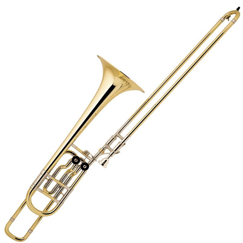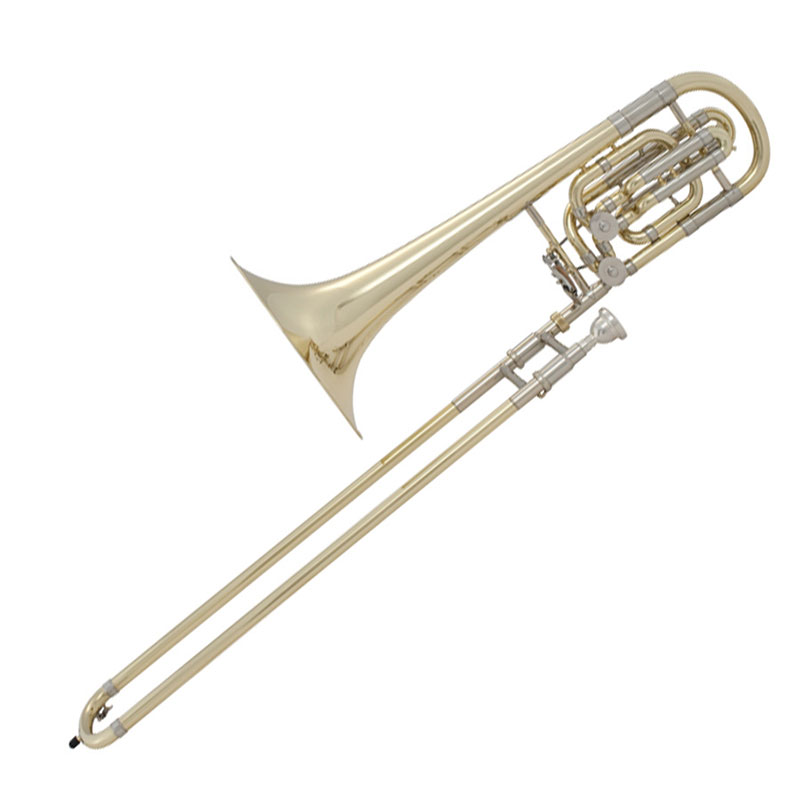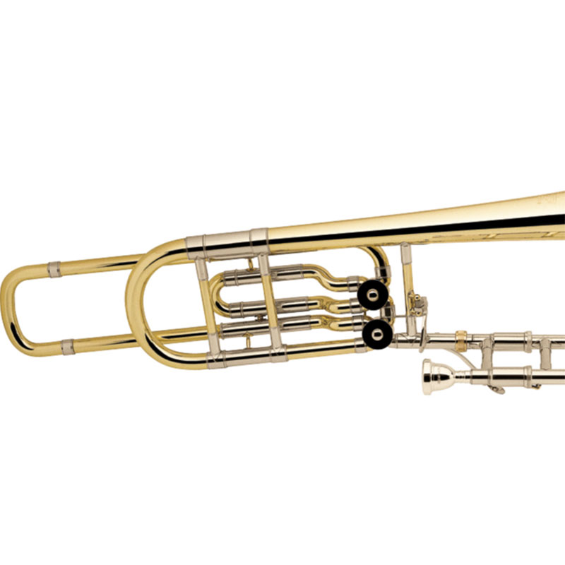 The Bach 50B2 stacked dependent double rotor bass trombone in the key of Bb/F/Eb features an 9-1/2" one-piece hand-hammered gold brass bell that has defined the symphonic sound for generations. The .562" large bore combined with the traditional wrap F/Eb attachments offers outstanding clarity and projection with just the right amount of resistance. The chrome plated nickel silver inner handslide tubes provide the ideal surface for smooth and quick handslide action. The clear lacquer finish adds a subtle warmth to the sound overall. The Bach 50B2 professional bass trombone is ideal for both symphonic and solo performance.
