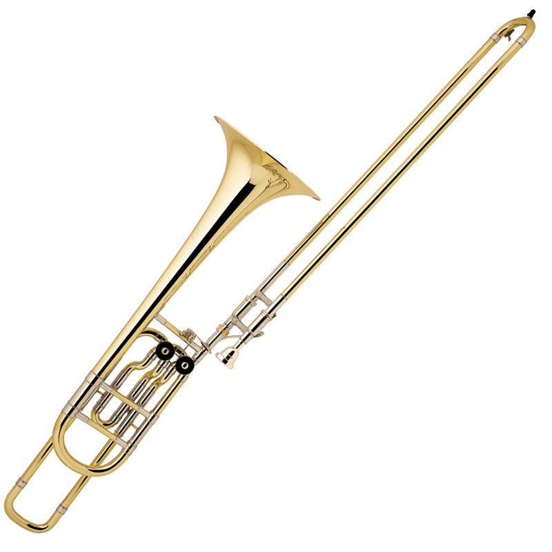 The Bach LT50B2LO stacked dependent double rotor bass trombone in the key of Bb/F/Eb features an 10-1/2" one-piece hand-hammered yellow brass bell that has defined the symphonic sound for generations. The .562" large bore combined with the open wrap F/Eb attachments offers outstanding clarity and projection with less resistance. The chrome plated nickel silver inner handslide tubes provide the ideal surface for smooth and quick handslide action. The clear lacquer finish adds a subtle warmth to the sound overall. The Bach 50B2LO professional bass trombone is ideal for both symphonic and solo performance.
