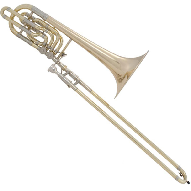 The Bach 50B3 inline independent double rotor bass trombone in the key of Bb/F/Gb features an 9-1/2" one-piece hand-hammered yellow brass bell that has defined the symphonic sound for generations. The .562" large bore combined with the traditional wrap F/Gb attachments offers outstanding clarity and projection with just the right amount of resistance. The chrome plated nickel silver inner handslide tubes provide the ideal surface for smooth and quick handslide action. The clear lacquer finish adds a subtle warmth to the sound overall. The Bach 50B3 professional bass trombone is ideal for both symphonic and solo performance.