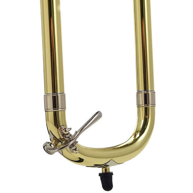 The Bach LT50BO single rotor bass trombone features an 9-1/2" one-piece hand-hammered yellow brass bell that has defined the symphonic sound for generations. The .562" large bore combined with the open wrap F attachment offers outstanding clarity and projection with less resistance. The chrome plated nickel silver inner handslide tubes provide the ideal surface for smooth and quick handslide action. The clear lacquer finish adds a subtle warmth to the sound overall. The Bach LT50BO professional bass trombone is ideal for both symphonic and solo performance.