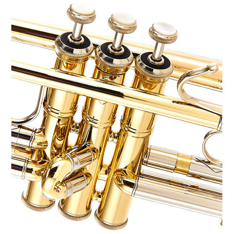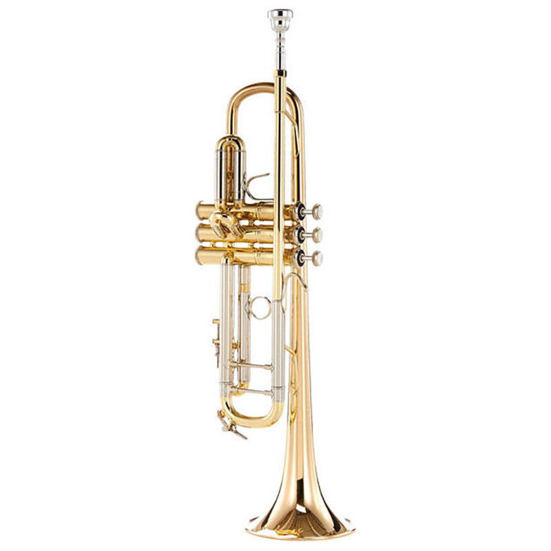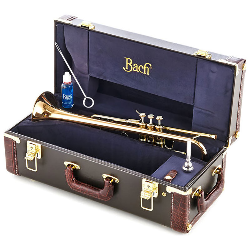 Vincent Bach Stradivarius 180-37G: lacquered Bb trumpet from an American manufacturer of brass instruments and accessories, which is considered the absolute top of the world. It is intended for professional players and college students of Performing Arts. Piston valves are made of monel (special alloys of nickel and copper) leadpipe and baffle are known. Gold brass - an alloy of copper and zinc in a ratio of 85:15, the larger part of the tool body is made of brass. ML-shaped baffle 72 has a diameter of 122.24 mm, 11.66 mm bore, comprises two water valves. The package includes a deluxe wooden case and mouthpiece C180 Vincent Bach 7C.