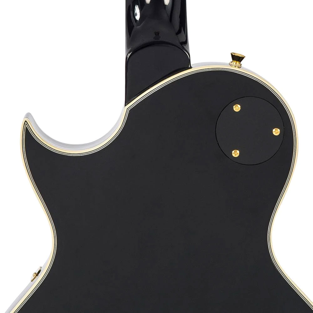 - Trup modela V100 od mahagonija omogućava masivan ton, definiciju, i još uvek prihvatljivu težinu, pogodnu i za duže svirke. Blage modifikacije legendarnog osnovnog dizajna unapređuju svirljivost i pristup višim pragovima. Set-in vrat, takođe od mahagonija, nosi udobni C profil, uz radijus od 12 inča, za preciznu i udobnu kontrolu nad žicama. Čvrst Wilkinson hardware osigurava maksimalan transfer energije, i zaista moćan sustain. Ugrađeni Wilkinson WOCHB magneti poseduju sve kvalitete koje svirači i očekuju od PAF tipa humbuckera - pun, zaokružen ton, bilo u clean ili overdrive postavci. Pravi izbor za sve koji traže autentičan LP zvuk, bilo za jazz, blues, rock, ili metal svirku. V1003BB dolazi u atraktivnom crnom finišu u visokom sjaju.