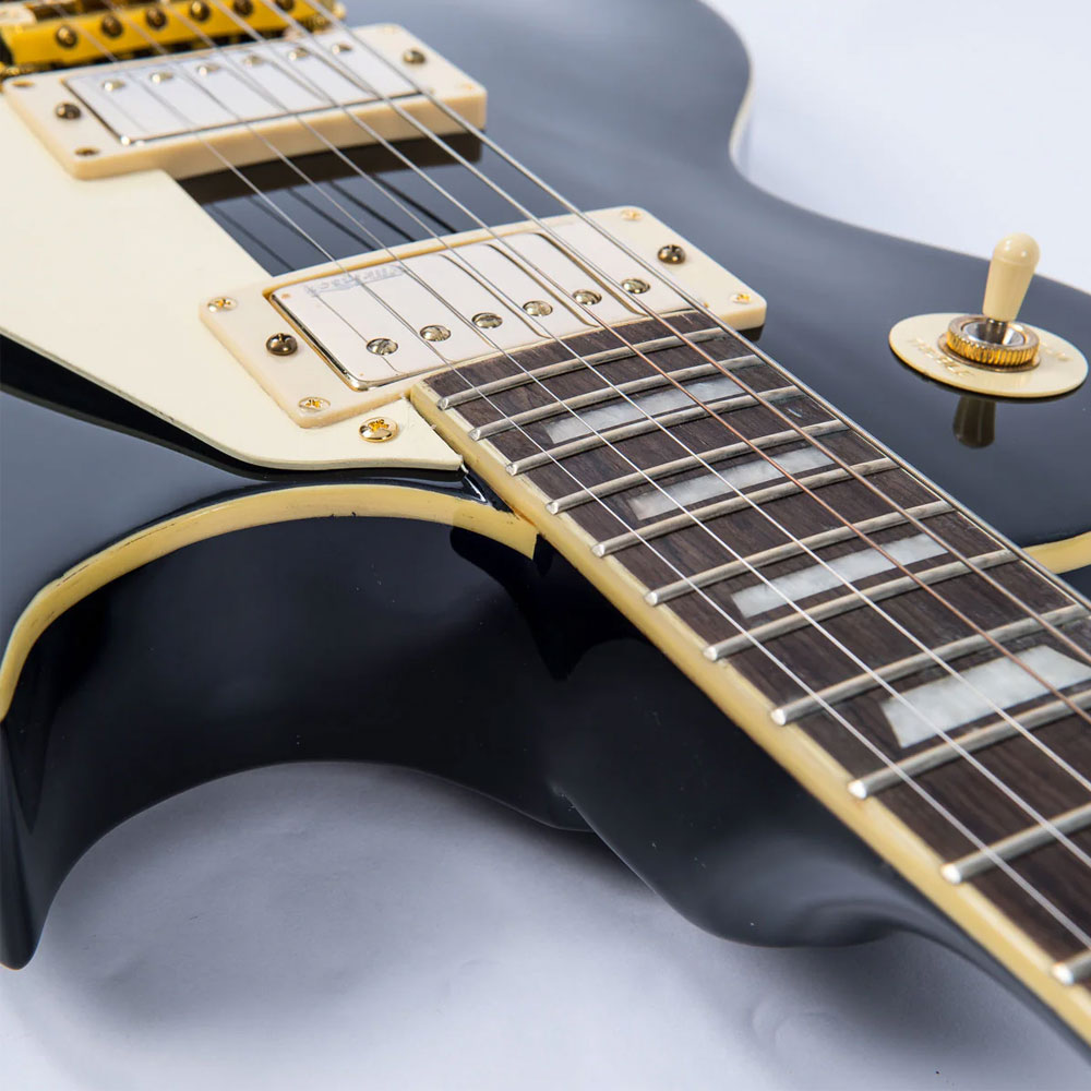 - Trup modela V100 od mahagonija omogućava masivan ton, definiciju, i još uvek prihvatljivu težinu, pogodnu i za duže svirke. Blage modifikacije legendarnog osnovnog dizajna unapređuju svirljivost i pristup višim pragovima. Set-in vrat, takođe od mahagonija, nosi udobni C profil, uz radijus od 12 inča, za preciznu i udobnu kontrolu nad žicama. Čvrst Wilkinson hardware osigurava maksimalan transfer energije, i zaista moćan sustain. Ugrađeni Wilkinson MWVC magneti poseduju sve kvalitete koje svirači i očekuju ovog tipa humbuckera - pun, zaokružen ton, bilo u clean ili overdrive postavci. Pravi izbor za sve koji traže autentičan LP zvuk, bilo za jazz, blues, rock, ili metal svirku. V100BB dolazi u atraktivnom crnom finišu.