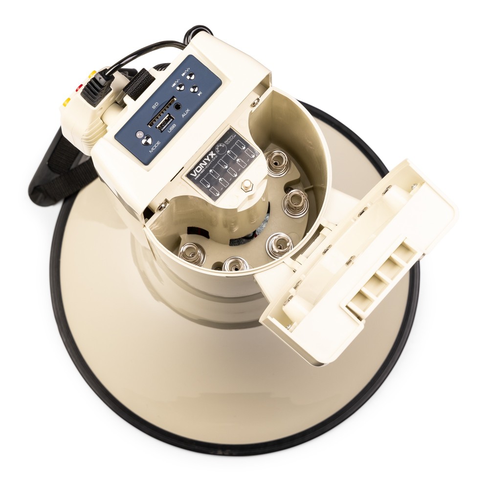 - Nekoliko osnovnih kriterijuma će Vam pomoći pri izboru odgovarajućeg modela. Domet je svakako najvažniji: sa povećanjem zvučnog pritiska (u decibelima) operativni domet se takođe povećava. Ovaj model poseduje ugrađeno pojačalo od 220W, BT reciever za audio reprodukciju, USB i SD slotove, mikrofon, volume kontrolu i funkciju snimanja i sirenu. Pokriva domet od 0.7-1km zavisno od okruženja. Napaja se sa 8 x C baterijama od po 1.5V. Kao zamena za baterije služi i MRB10 Lithium-ion baterija sa punjačem.