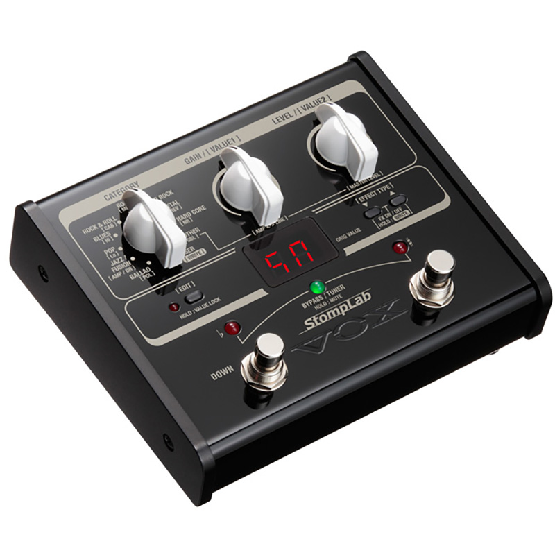 The compact (yet feature-laden) Vox StompLab IG is perfect for musicians who want a ton of tones in a small space. Using the same sound engine as Vox's VT+ amps and ToneLab multi-effects units, the StompLab offers 100 gig quality presets for any style of music. An intuitive and easy to navigate layout makes the StompLab perfect for seasoned pros and beginners. You can create your ideal sound choosing from over 100 types of programmable effects. Cut down the gear clutter onstage with the Vox StompLab IG.