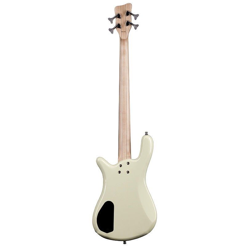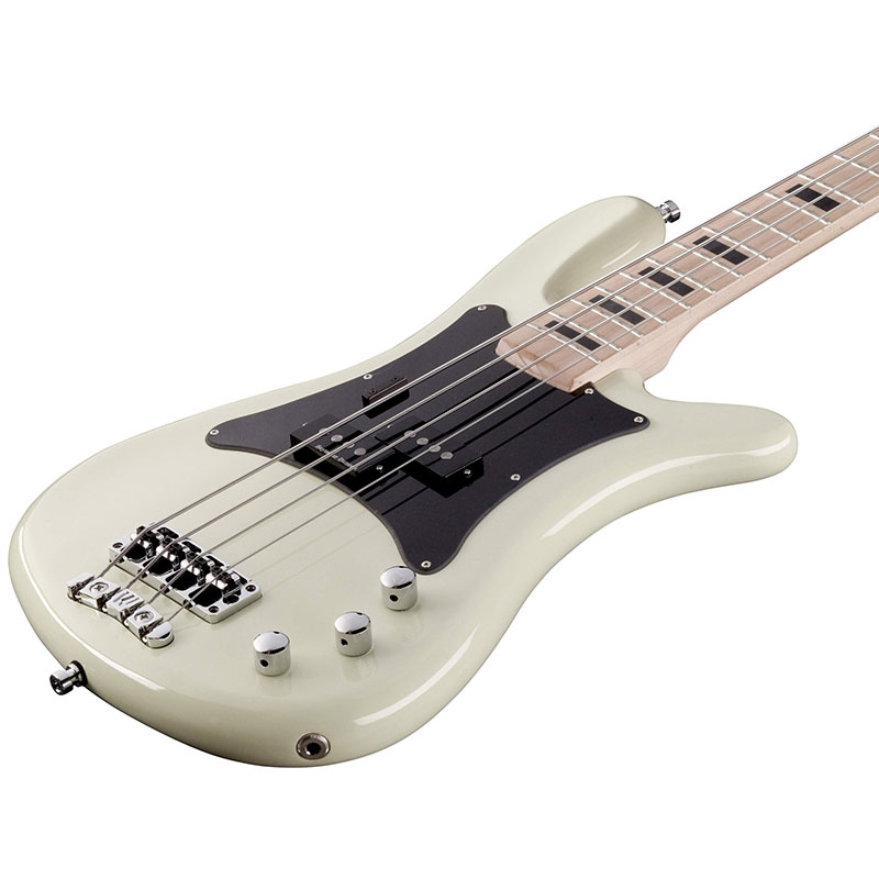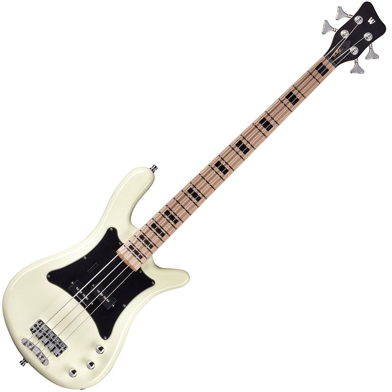 It’s built with an alder body, a maple neck, and a maple fret board holding 21 jumbo bronze frets. The body is finished in Cream White with a black pick guard to give it a retro look, while its passive Seymour Duncan P pickup makes it sound the part as well. Other features include passive MEC electronics, Warwick Hardware, and black block inlays.