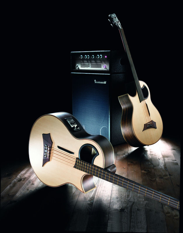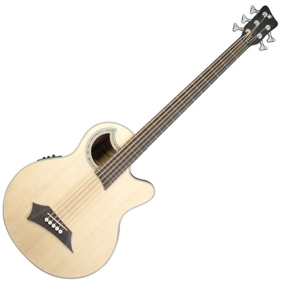 Ozvučena akustična bas gitara. Petožičani model sa prednjom pločom od laminirane smreke, vrat od mahagonija, Fishman ozvuka, 24 praga, duga skala od 32" i warwick čivijama u hrom varijanti.