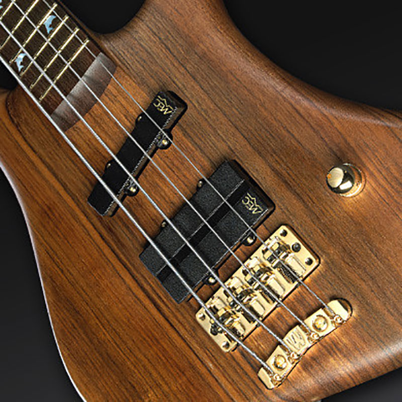 The tuners, the Just-a-nut, pickups, bridge and saddle, are all mounted to the same piece of wood producing limitless unrivaled tones. The vast tone flexibility, provided by the unique jazz/twin jazz pickups, opens up a new dimension - full and round across the entire sound spectrum.
