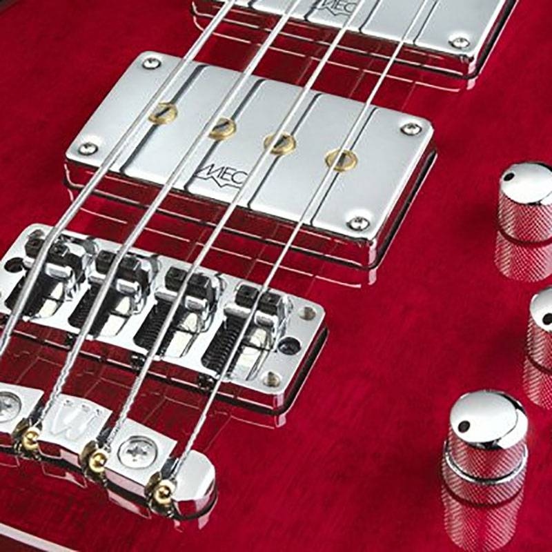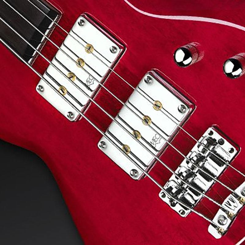 Warwick and Jack Bruce join their forces once more to bring the ultimate bass guitar for Jack. In his long and successful career, Bruce played in many bands and contributed to the history of rock music more than it can be measured. JB3 starts off as a solid bodied, double cutaway bass with a mahogany body. Body shape is very reminiscent of Gibson`s SG Bass. The edges are beveled, but there are no bindings or pickguards featured on this model. Burgundy red stain high polish and nirvana black stain high polish are available color options. In the bridge section, there is a well known Warwick two-piece with top-load construction and chrome plating. Pickups for this bass are supplied by MEC, and they are passive humbuckers, both in the bridge and neck positions. Along with these pickups comes MEC active two-way electronics setup. The neck on JB3 is made of mahogany with neck-through-body construction. Tigerstripe ebony fingerboard features 24 frets with Just-A-Nut III brass string nut and no position inlays. 34" scale, Warwick tuners and chrome hardware complete the list of specs for JB3.