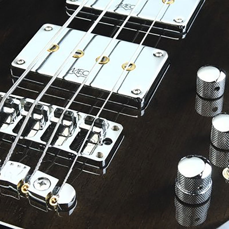 Warwick and Jack Bruce join their forces once more to bring the ultimate bass guitar for Jack. In his long and successful career, Bruce played in many bands and contributed to the history of rock music more than it can be measured. JB3 starts off as a solid bodied, double cutaway bass with a mahogany body. Body shape is very reminiscent of Gibson`s SG Bass. The edges are beveled, but there are no bindings or pickguards featured on this model. Burgundy red stain high polish and nirvana black stain high polish are available color options. In the bridge section, there is a well known Warwick two-piece with top-load construction and chrome plating. Pickups for this bass are supplied by MEC, and they are passive humbuckers, both in the bridge and neck positions. Along with these pickups comes MEC active two-way electronics setup. The neck on JB3 is made of mahogany with neck-through-body construction. Tigerstripe ebony fingerboard features 24 frets with Just-A-Nut III brass string nut and no position inlays. 34" scale, Warwick tuners and chrome hardware complete the list of specs for JB3.