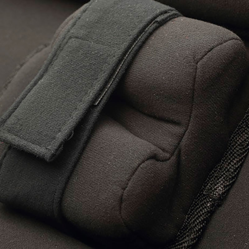 - 5 layer shell (2 mm EVA foam, 5 mm Polyethylene foam, 1.5 mm plastic plate, 15 mm foam, 5 mm foam-adhered velveteen)