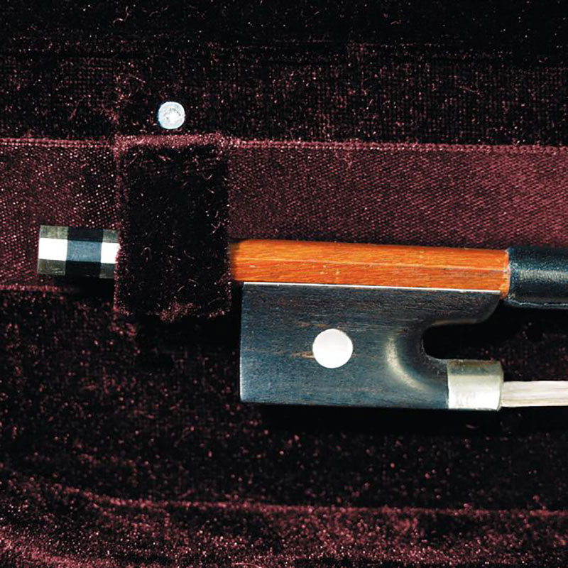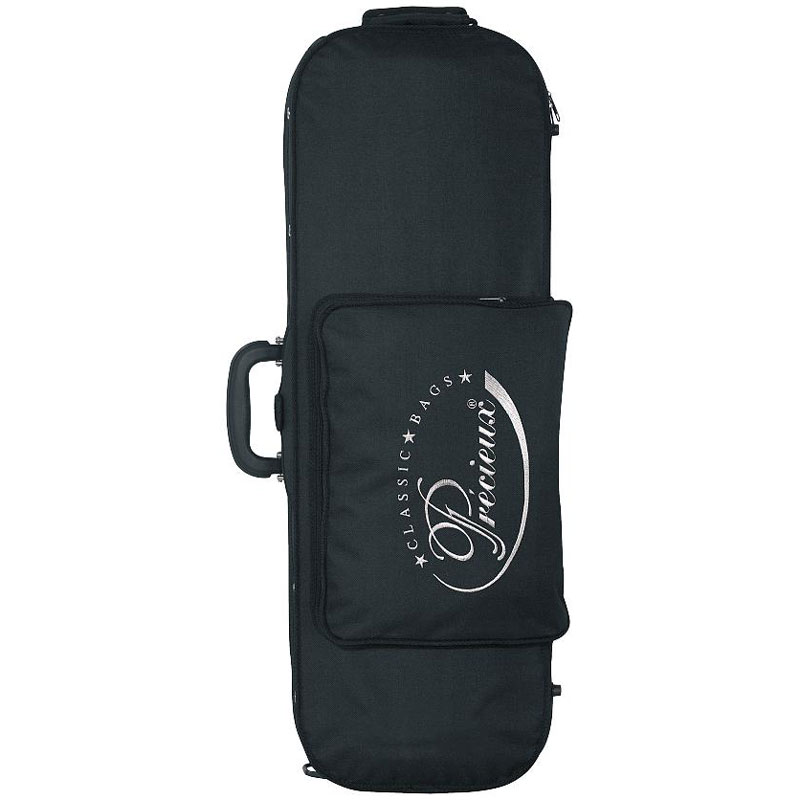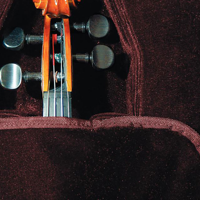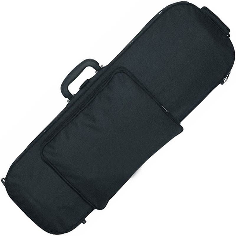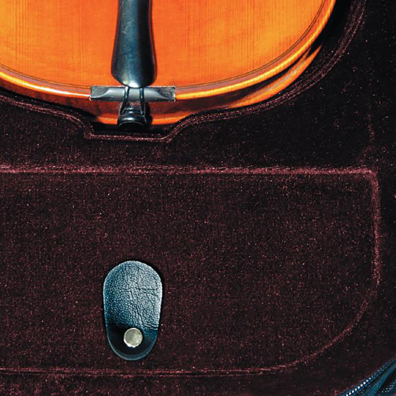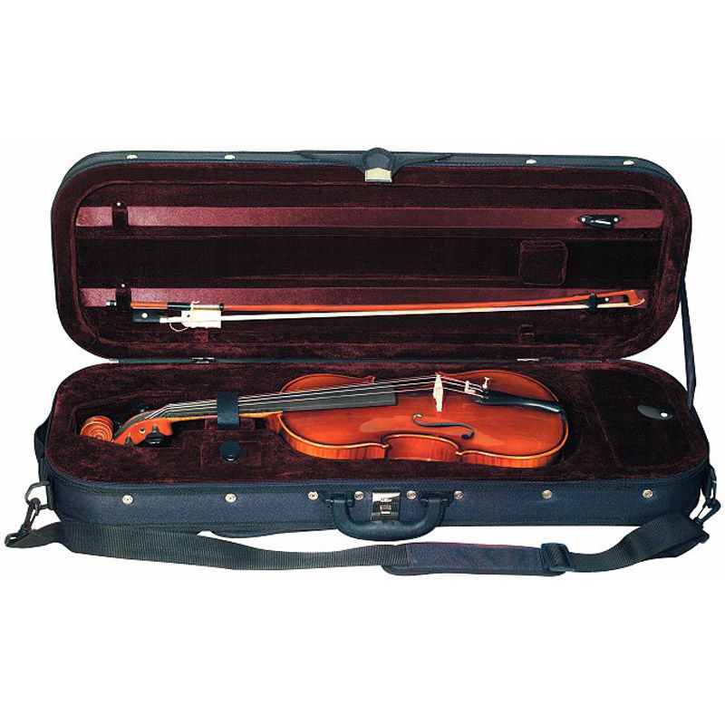 Ovalni kofer za violinu 4/4 veličine od nepromočivog materjala. Unutrašnjost obložena crvenim plišom koji štiti instrument od oštećenja. Odličan za drumski i avio transport. Na poklopcu kofera se nalaze dva mesta predviðena za odlaganje i čuvanje dva gudala, i plastična providna cev za čuvanje strune (dlake) za gudala.
