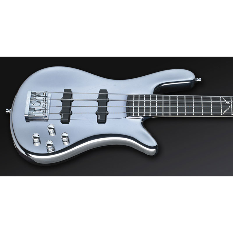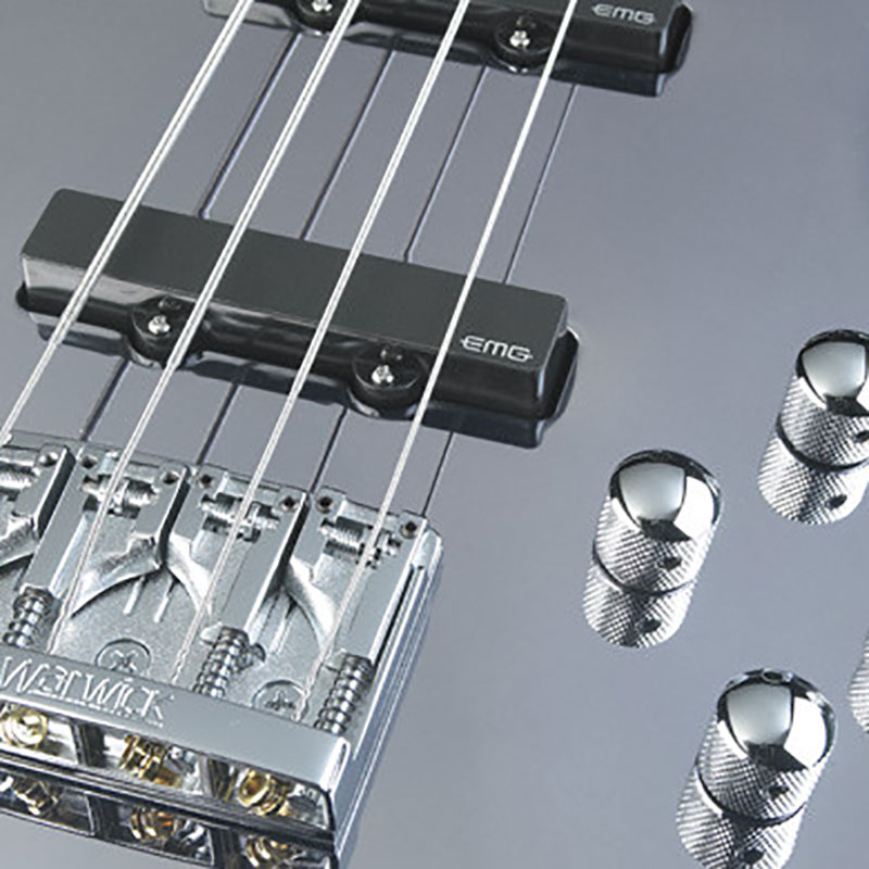Whether live or on CD Metallica is pure adrenaline and the new signature bass Warwick built for their master of bass, Robert Trujillo, is equally powerful. Laying the sonic foundation for one of the greatest Heavy Metal acts ever is no mean feat, so Robert teamed up with Warwick to create a bass that would be up to the challenge. Make no mistake, this bass is for heavy hitters: a chrometone finish gives it a metallic shine that demands center stage on any gig. The increased mass of the neck, special nut width and active EMG pickups and Bartolini 3-band electronics invite you to play at full throttle. The neck and body are both made of Maple, lending it an incredibly tight tone. Even the fastest licks and heaviest chords, for which Rob is notorious, are clear and powerful. Rob especially likes the comfort and the sleek design of the body which makes you become one with the resonance of the instrument. Being part of Metallica is not just another gig. As a result, the Robert Trujillo Streamer Signature bass is not just another bass, but rather some kind of monster; it is as powerful, authoritative and inspired as the man for whom Warwick built it.