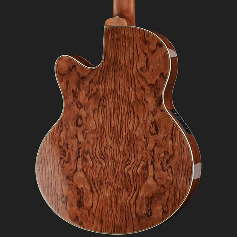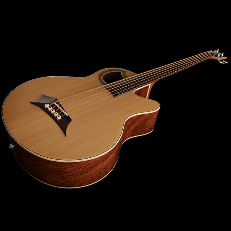 This exciting bass is equipped with the Fishman Prefix Plus acoustic guitar system, it provides a variable notch filter, shelving bass & treble, semi-parametric contour and brilliance controls for precise tone shaping. There is also a phase reversal switch and low battery indicator. Even without amplification, the basic character is evident; a growling tone across the instrument's full range with a big bottom.
