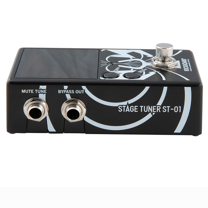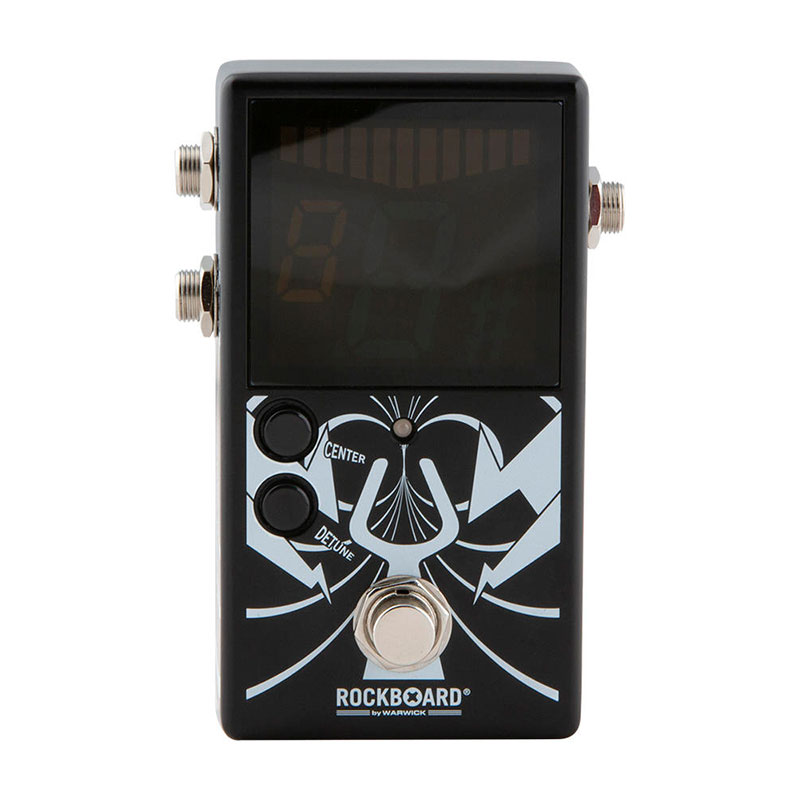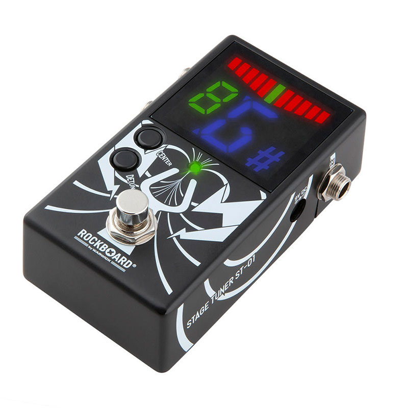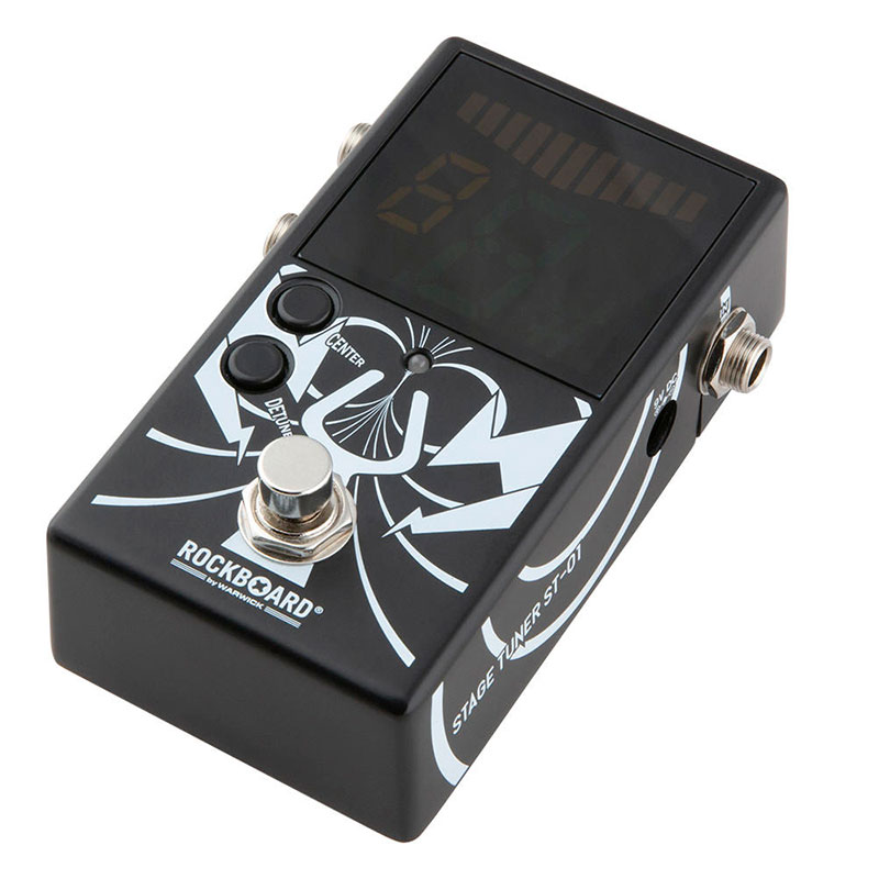 Warwick RockBoard StageTuner ST-01 combines all aspects that musicians seek in a chromatic pedal tuner. Its large LED 28 segment display provides an easily readable interface even from meters away. The true bypass does not affect your guitar's tone at all. Its two outputs allow for either silent or audible tuning. The ST-01's reference frequency can be changed in 1 Hz steps from 432 to 445 Hz with a tuning range from 27,5 Hz (A0) to 4.168 kHz (C8) accuratly down to 1 Cent. It also feature a handy detuning function, which lets you drop your tuning by 1, 2 or 3 semi-tones. All this, combined with the StageTuner ST-01's compact metal housing makes it the optimal companion you will not want to miss on your (RockBoard) pedalboard.