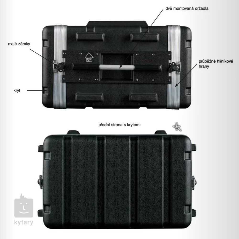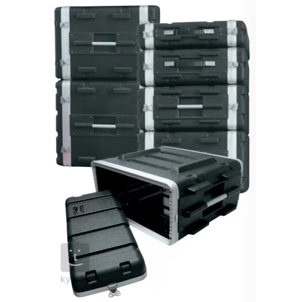 RockCase RC ABS 24102 B je profesionalni kofer od ABS-a za efekte, veličine 2U. Širina je standardna - 19", otvara se saprednje i zadnje strane kako bi se pristupilo oređajima. Spoljašnja strana ABS materijala je reljefna tako da se može čvrsto uklopiti sa drugim koferom istog modela. Šarke u obliku leptira i lajsne za poklopce su od aluminijuma