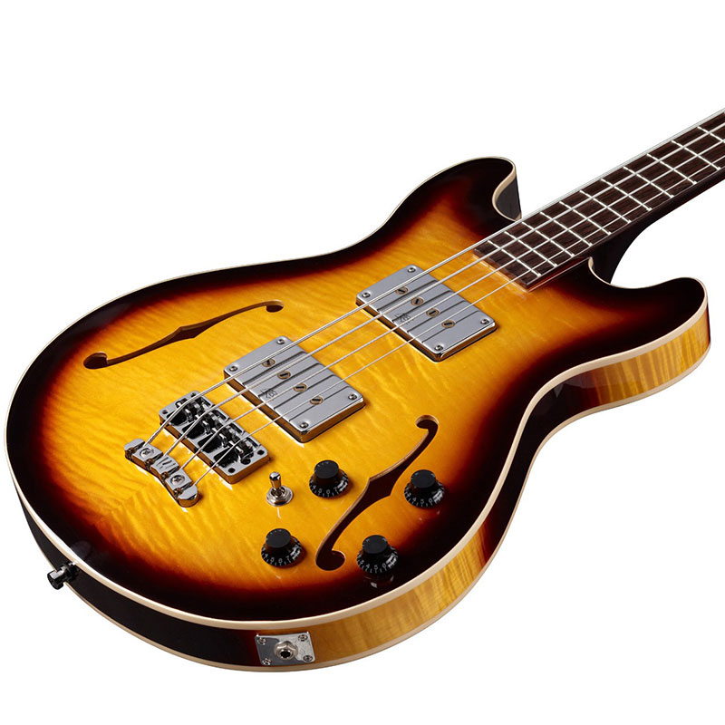 The Warwick Rockbass 4-String Starbass features a semi-hollow Maple body coupled with a Maple neck and Rosewood fingerboard to produce a bright, warm tone with sizzling highs and firm lows. The bass has a set of Vintage MEC single coil pickups that produce rich tones and passive electronics for control over the pickups’ volume and tone. With a 2-Piece Warwick bridge and a Just-A-Nut III nut, the Warwick bass offers an incredible sound with the style to match, perfect for any bassist's collection.