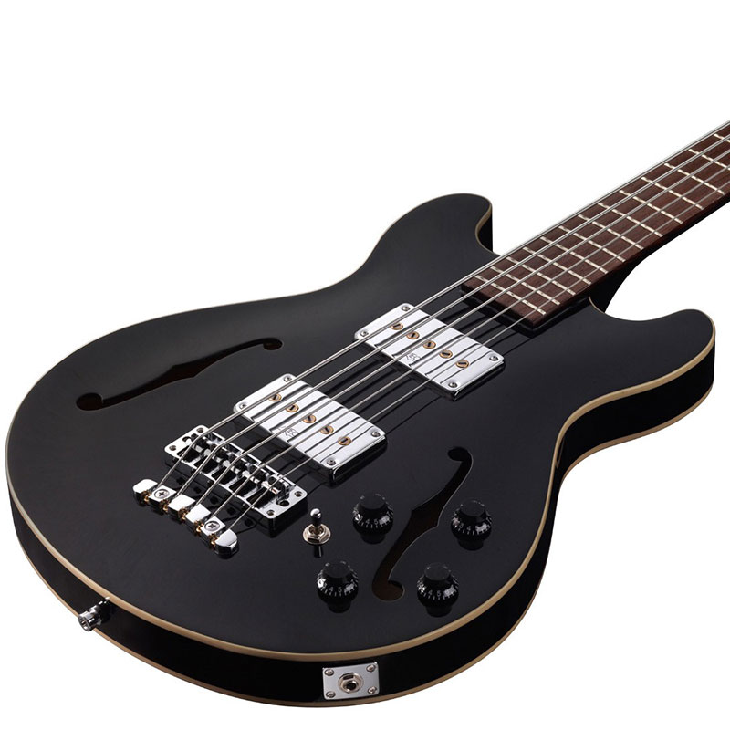 The Warwick Rockbass 5-String Starbass features a semi-hollow Maple body coupled with a Maple neck and Rosewood fingerboard to produce a bright, warm tone with sizzling highs and firm lows. The bass has a set of Vintage MEC single coil pickups that produce rich tones and passive electronics for control over the pickups’ volume and tone. With a 2-Piece Warwick bridge and a Just-A-Nut III nut, the Warwick bass offers an incredible sound with the style to match, perfect for any bassist's collection.