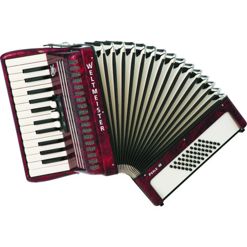 Weltmeister Perle klavirna harmonika sa 48 basova za početnike, desna ruka je dvoglasna dok je leva troglasna.