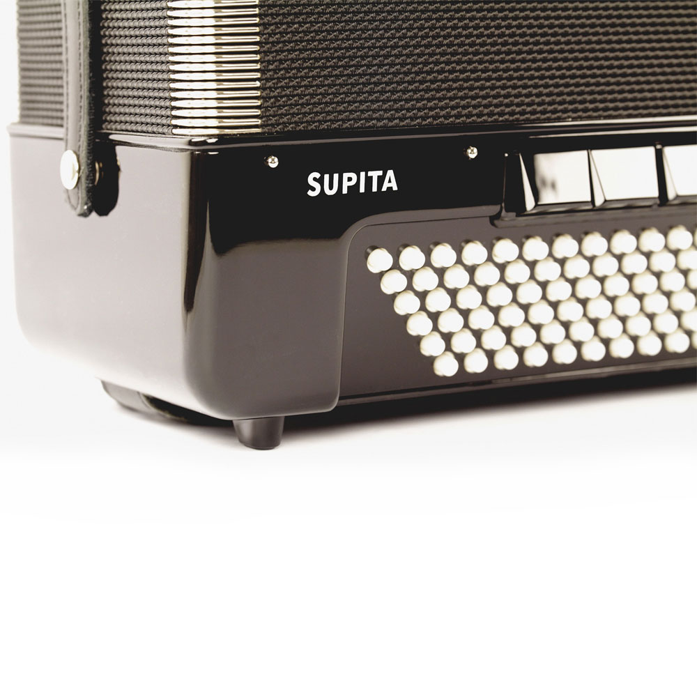 Weltmeister Supita klavirna harmonika sa 120 basova je vrhunska harmonika koja odgovara svim potrebama muzičara. Izrađena od visoko kvalitetnih materijala sa vrhunskom mehanikom i dirkama sa drvenom osnovom, ova harmonika će pružati fenomenalan ton. Topao, moćan zvuk podržan sa jakim basovima daje ovoj harmonici kompletan i zaokružan tonski kvalitet.