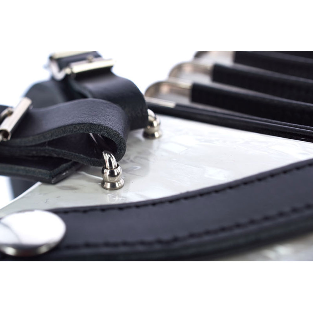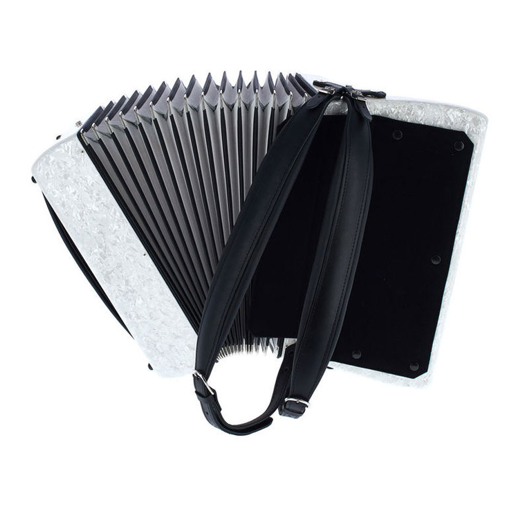 Weltmeister Topas IV Italian klavirna harmonika sa 96 basova je vrhunska harmonika koja odgovara svim potrebama muzičara. Izrađena od visoko kvalitetnih materijala sa vrhunskom mehanikom i dirkama sa drvenom osnovom, ova harmonika će pružati fenomenalan ton. Topao, moćan zvuk podržan sa jakim basovima daje ovoj harmonici kompletan i zaokružan tonski kvalitet.