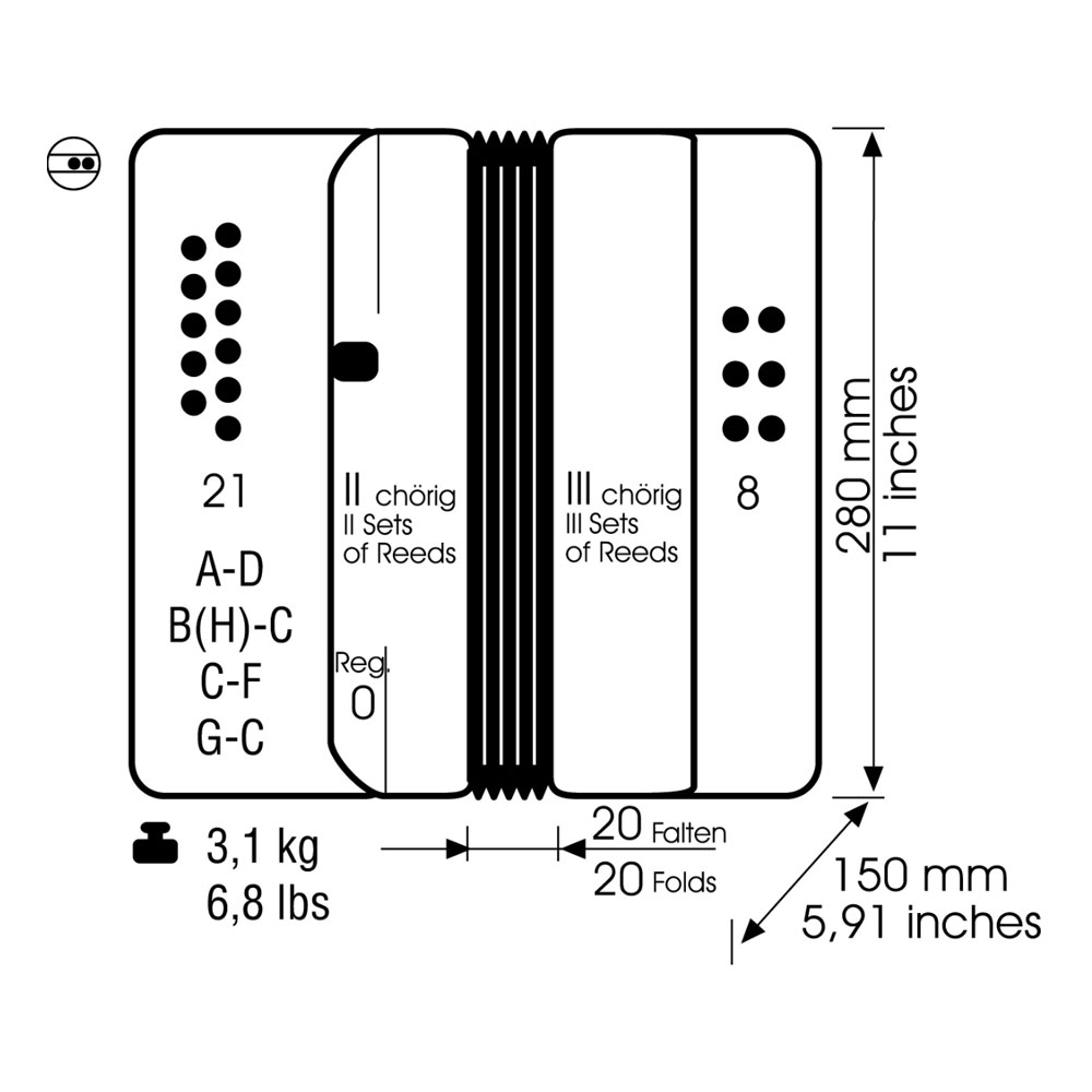 - Izrađena od kvalitetnih materijala sa vrhunskom mehanikom i dirkama ova harmonika će pružati fenomenalan ton. Topao, moćan zvuk podržan sa jakim basovima daje ovoj harmonici kompletan i zaokružan tonski kvalitet. Dostupna u sledećim tonalitetima: CF, GC, AD, DG, B(B)-C.