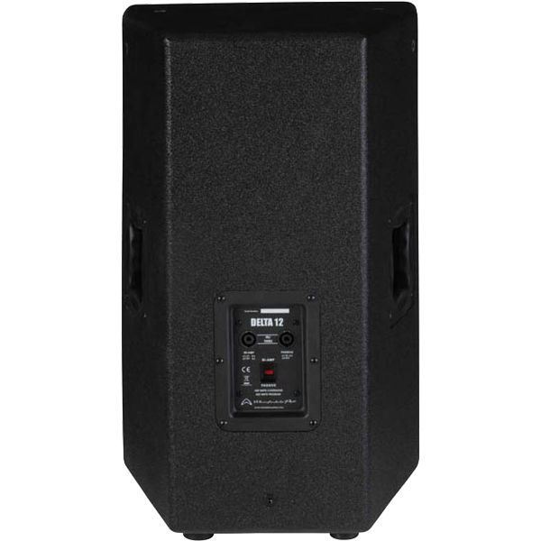 Dvosistemska drvena zvučna kutija trapezoidnog oblika, sa RHINO ROCK premazom, crne boje, sa 12" zvučnikom, sinusne snage 400W, 8Ohma, 60-20kHz, usmerenosti od 90 x 45, mogućnošću postavke na držače, dimenzija 630 x 390 x 373mm, težine 25kg