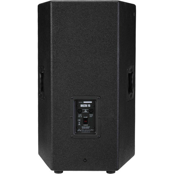 Dvosistemska drvena zvučna kutija trapezoidnog oblika, sa RHINO ROCK premazom, crne boje, sa 15" zvučnikom, sinusne snage 500W, 8Ohma, 50-20kHz, usmerenosti od 90 x 45, mogućnošću postavke na držače, dimenzija 700 x 446 x 406mm, težine 30kg