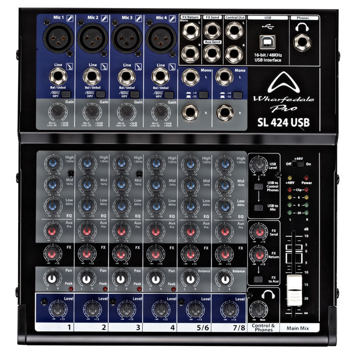 The SL 424 is a compact studio/live mixing console with built-in full duplex USB interfacing.