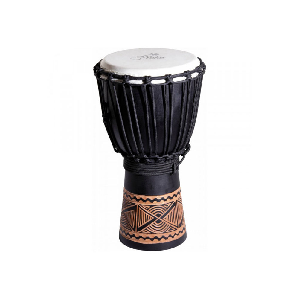 YUKA DJWN08-16BR3 Wooden Jammer 8" đembe izrađeno od jednog komada mahagonija, s opnom od kozje kože. Sila zatezanja opne podešava se pomoću najlonskog užeta provučenog kroz metalne prstenove. Telo je smeđe boje, ukrašeno izrezbarenim ručno izrađenim etno ornamentom.