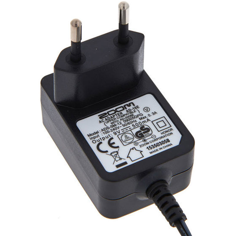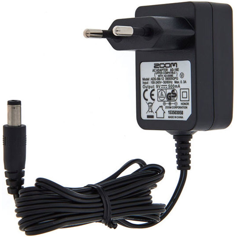 Zoom AD-16E je strujni adapter namenjen Zoom ureðajima. Sa 9V i 500ma odgovara velikom broju Zoom snimača, procesora i opreme. Kompatibilan za uređaje: 1010, 1202, 1204, 2020, 2100, 3000, 3030, 4040, 5000, 5050, 504, 504II, 505, 505II, 506, 506II, 507, 508, 509, 510, 606, 607, 707II, 708II, A1 FOUR, A1X FOUR, A2, A2.1u, A3, AC-2, AC-3, B1, B1X, B1on, B1Xon, B1 FOUR, B1X FOUR, B2, B2.1u, B3, B3n, BFX-708, G1, G1N, G1on, G1Xon, G1u, G1X, G1XN, G1 FOUR, G1X FOUR, G2, G2.1u, G2Nu, G2.1Nu, G3, G3n, G3X, G3Xn, G5, G5n, GFX-1, GFX-3, GFX-5, GFX-707, GM-200, H4, HL-01, MRS-4, MRS-8, MRT-3, MS-100BT, MS-50G, MS-60B, MS-70CDR, PD-01, PFX-9003, PS-02, PS-04, RFX-300, RT-123, RT-223, RT-234, RT-323, SB-246, ST-224, TM-01, UF-01, V6